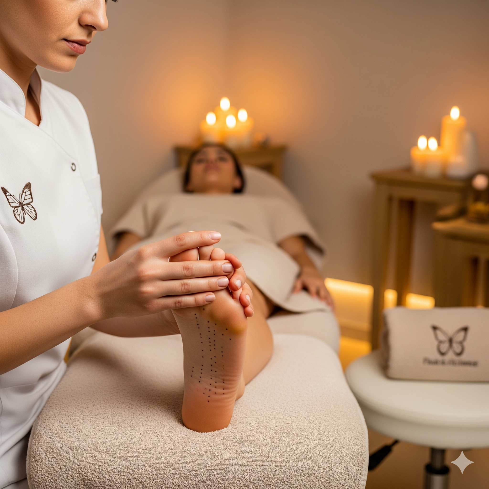 Refleksoloji masajı, ayak tabanındaki belirli noktalara baskı uygulanarak yapılan bir masaj tekniğidir.